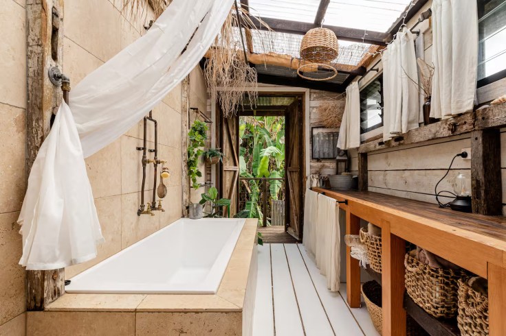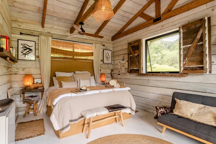 Les portes de grange d’origine, vieilles de plus de 100 ans, ont été magnifiquement conservées et intégrées à la décoration, offrant un charme intemporel. Sur la terrasse, une baignoire et un spa , fabriqués à partir d’un ancien baril de vin, ajoutent une touche unique et accueillante. C’est la vue époustouflante sur le paysage qui a inspiré son propriétaire à restaurer cet endroit pour en profiter chaque jour et pour accueillir des hôtes chanceux en quête de détente, à seulement 10 minutes en voiture des plages . Cette ancienne laiterie a été transformée en une magnifique maison de vacances hors réseau, construite avec du bois scié à la main aux finitions brutes, tout en respectant une démarche durable.