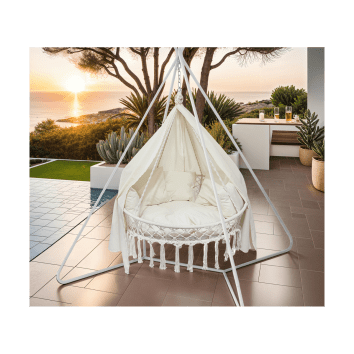 Le fauteuil suspendu d’intérieur avec pied offre une alternative pratique pour profiter du charme d’une assise suspendue sans avoir à réaliser de travaux d’installation. Monté sur une structure autoportante, il peut être facilement déplacé et positionné selon les besoins, que ce soit en intérieur ou en extérieur. C’est une solution idéale pour les locataires ou pour ceux qui privilégient la flexibilité.