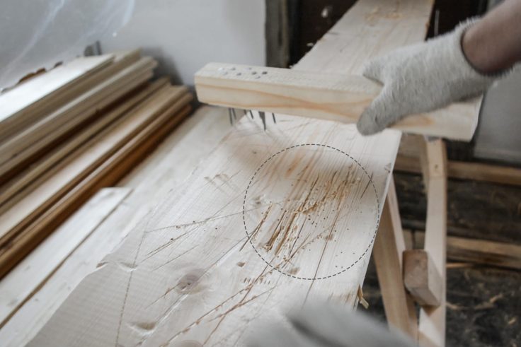 Nous poncerons la planche après le brossage.