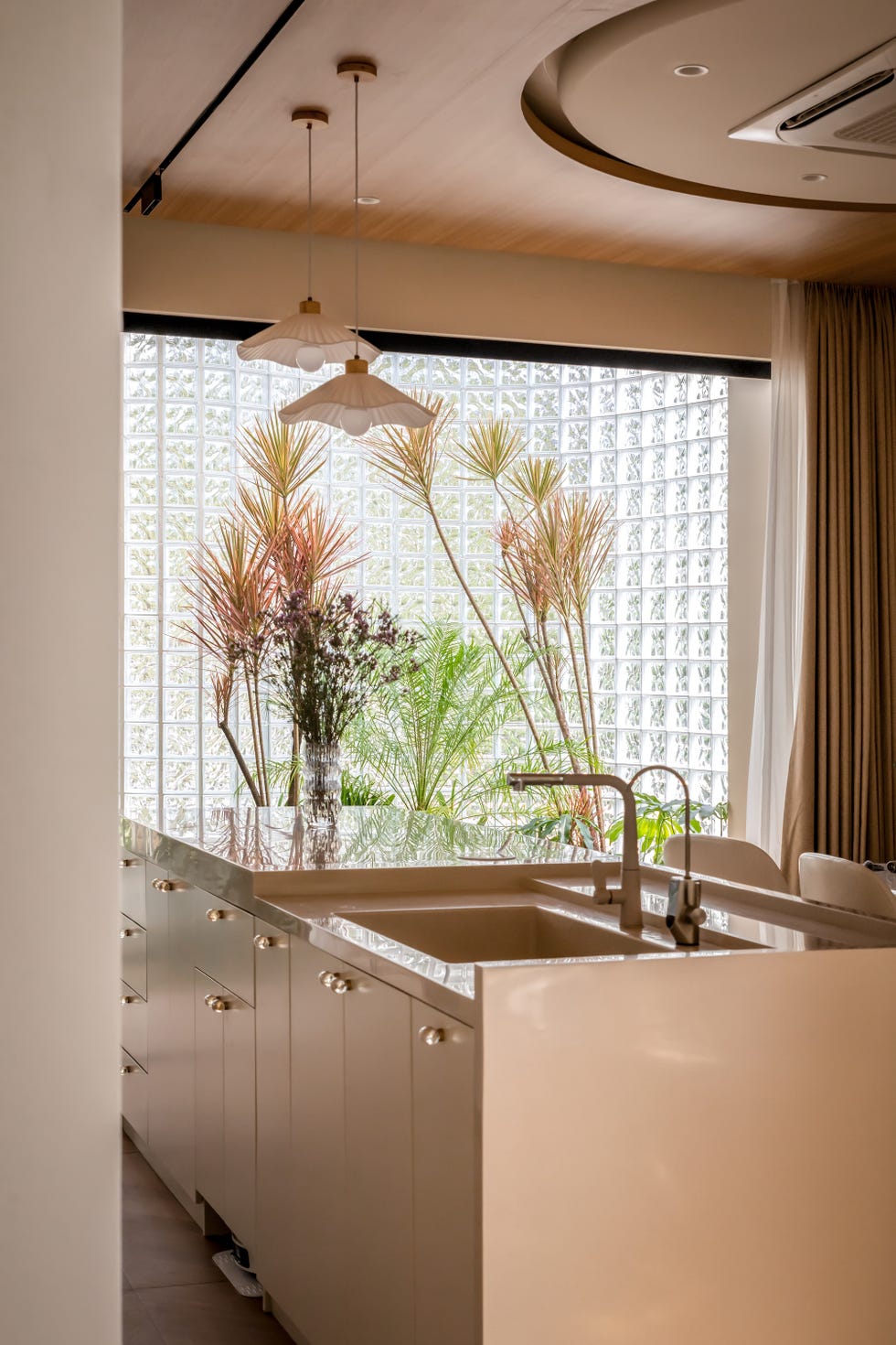 Le verre n’est généralement pas le matériau le plus courant dans les logements urbains du sud du Vietnam, ou dans de nombreuses autres régions en général, mais dans ce cas, il devient le fil conducteur de l’ensemble du projet. D’une superficie construite de 465 mètres carrés, la Crystal Pavilion House, conçue par le studio DA VÀNG, explore une idée inhabituelle dans son contexte : un volume sculpté avec plus de 3 000 briques de verre qui agissent à la fois comme une peau architecturale, un régulateur climatique et un filtre visuel.