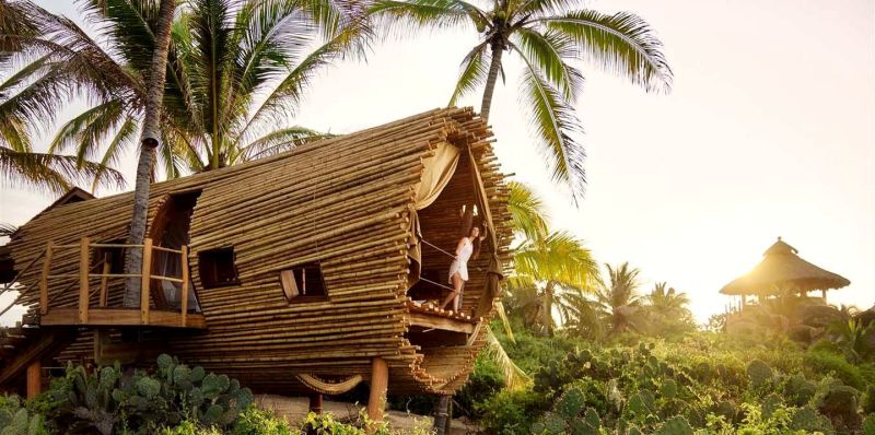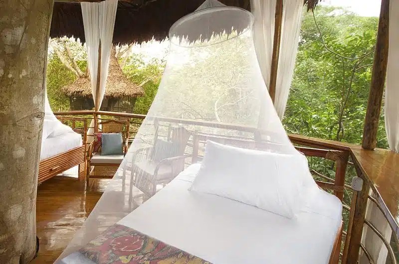 Imaginez vous réveiller avec la vue des vagues qui s’écrasent sur le rivage à quelques mètres de votre lit et lire un livre sur votre hamac tout en étant perché à deux mètres au-dessus du sol. C’est un rêve très tarzan, non ? Pourtant, en même temps, les clients ont tout le confort, y compris une salle de bain privée, une piscine partagée et le wi-fi.