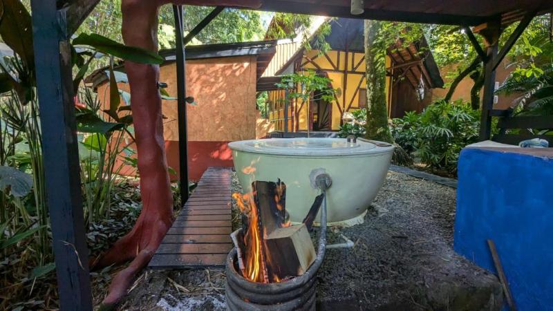 Et la cabane dans les arbres ? Oh là là, ce n’est pas n’importe quel abri ! Elle peut loger jusqu’à six personnes (donc préparez-vous à des débats sur qui finira sur le canapé), avec deux niveaux, parce que pourquoi se contenter d’un seul étage quand on peut être accroché à des branches ? C’est une vraie maison avec une cuisine, un salon et même une salle de bain… et tenez-vous bien, un spa chauffé à la flamme ! Oui, vous avez bien entendu, vous pouvez vous détendre tout en vous demandant si cette branche va vraiment tenir le coup. Cette maison dans les arbres de la forêt tropicale, c’est comme vivre dans un rêve, sauf que vous risquez de vous réveiller avec un oiseau sur la tête !