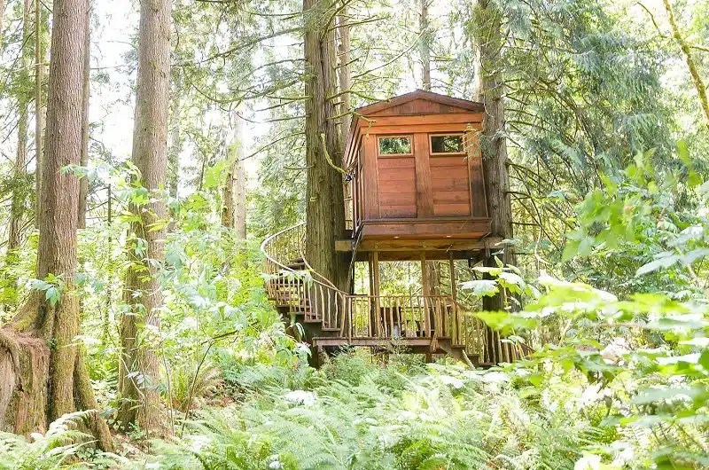 TreeHouse Point est à seulement 30 minutes de Seattle, mais c’est un monde à part. Un endroit romantique populaire parmi les couples et les jeunes mariés avec 5 cabanes dans les arbres différentes construites de manière durable au cœur de la forêt, où les clients peuvent renouer avec la nature. Gardez à l’esprit que cet hébergement dans les arbres est assez basique et que les cabanes au sommet des arbres n’ont pas de salle de bain privée, mais vous ne le remarquerez même pas quand vous serez entouré de tout ce vert.