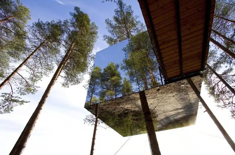 Ce n’est pas un complexe typique de cabanes dans les arbres : les cabanes de Harads sont respectueuses de l’environnement et décorées avec des designs révolutionnaires par certains des meilleurs architectes suédois. Ma cabane dans les arbres préférée est le Mirrorcube, où les murs en miroir reflètent la forêt environnante.