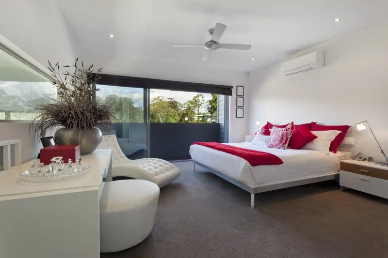- Rouge : le rouge est synonyme de passion et d’énergie. Utilisé par touches, il peut apporter une note sensuelle à votre chambre sans pour autant l’étouffer. Vous pouvez opter pour des accessoires ou des éléments de décoration rouge, comme des coussins, des rideaux ou un tapis.