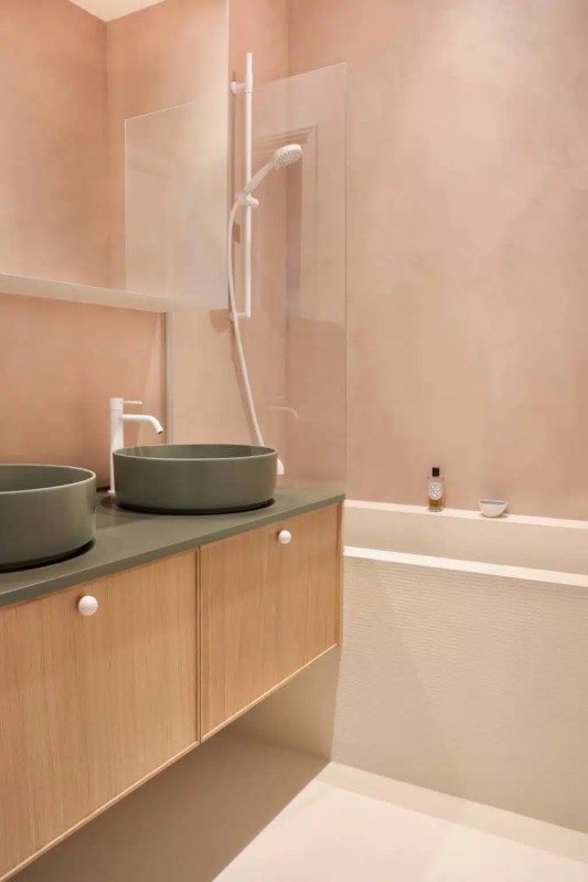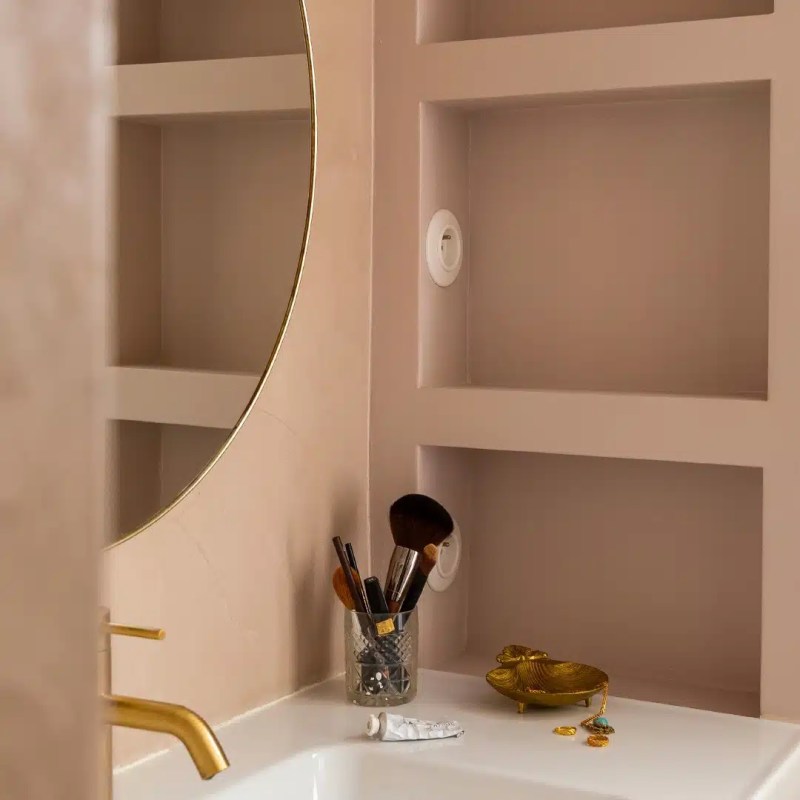 Sols, murs, plafond, de la terrasse à la salle de bain, en passant par la cuisine et même le mobilier, le béton ciré ne manque pas d’applications. Il permet aussi de réaliser des projets uniques et plus techniques comme les plans de travail, les vasques, les douches à l’italienne ou encore les niches maçonnées. Le résultat ? Un effet minimaliste et naturel pour un intérieur tout en douceur et en caractère.