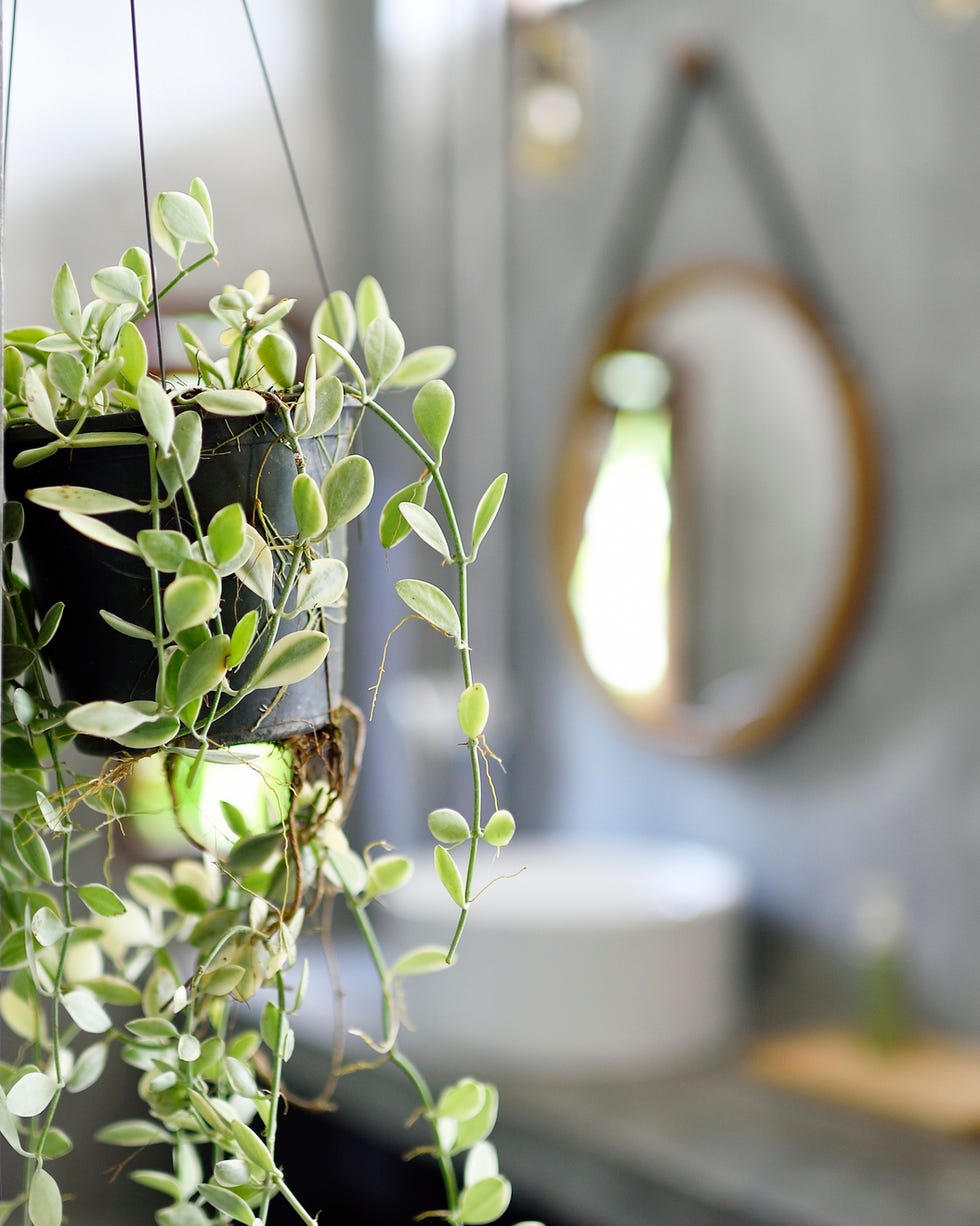 Si l’aloe vera et les fougères ont fière allure sur les étagères et sont des alliés parfaits pour décorer la salle de bain, les plantes grimpantes, comme le dischidia nummularia et le philodendron, sont superbes suspendues au plafond ou suspendues à des crochets. Vous pouvez également placer les plantes dans des paniers au sol pour offrir différentes hauteurs, et la meilleure espèce est le palmier areca. Bien sûr, n’oubliez pas de choisir vos pots avec soin . Ils doivent être fabriqués dans un matériau poreux, comme la terre cuite, et comporter des trous de drainage au fond.