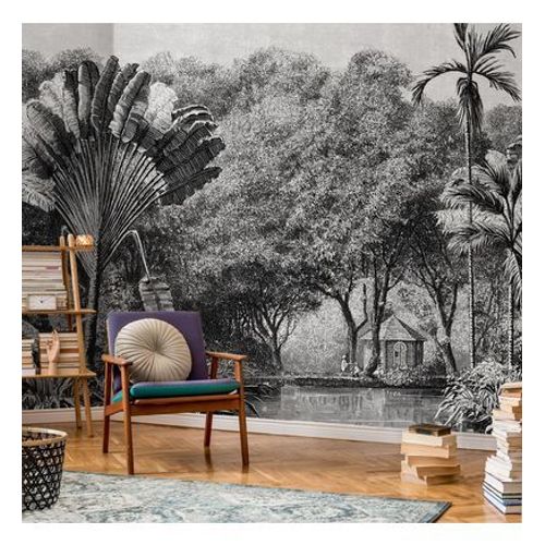 - Papier peint fresque : Pour un rendu encore plus impactant, choisissez un papier peint fresque qui permet de couvrir complètement la cage d’escalier avec un paysage.
