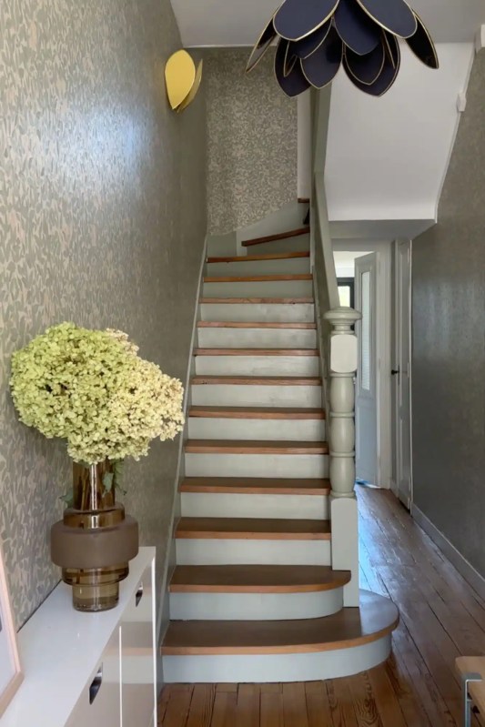 - Motifs graphiques ou floraux : Que vous aimiez les papiers peints à fleurs très campagne anglaise ou les classiques suédois, ou que vous préférez des versions plus graphiques, le papier peint est toujours une option réussie dans la cage d’escalier. Il apporte de suite une touche originale, cosy et pleine de personnalité. Vous pouvez, au choix, opter pour un seul mur ou habiller toute la cage d’escalier pour un effet encore plus bluffant.