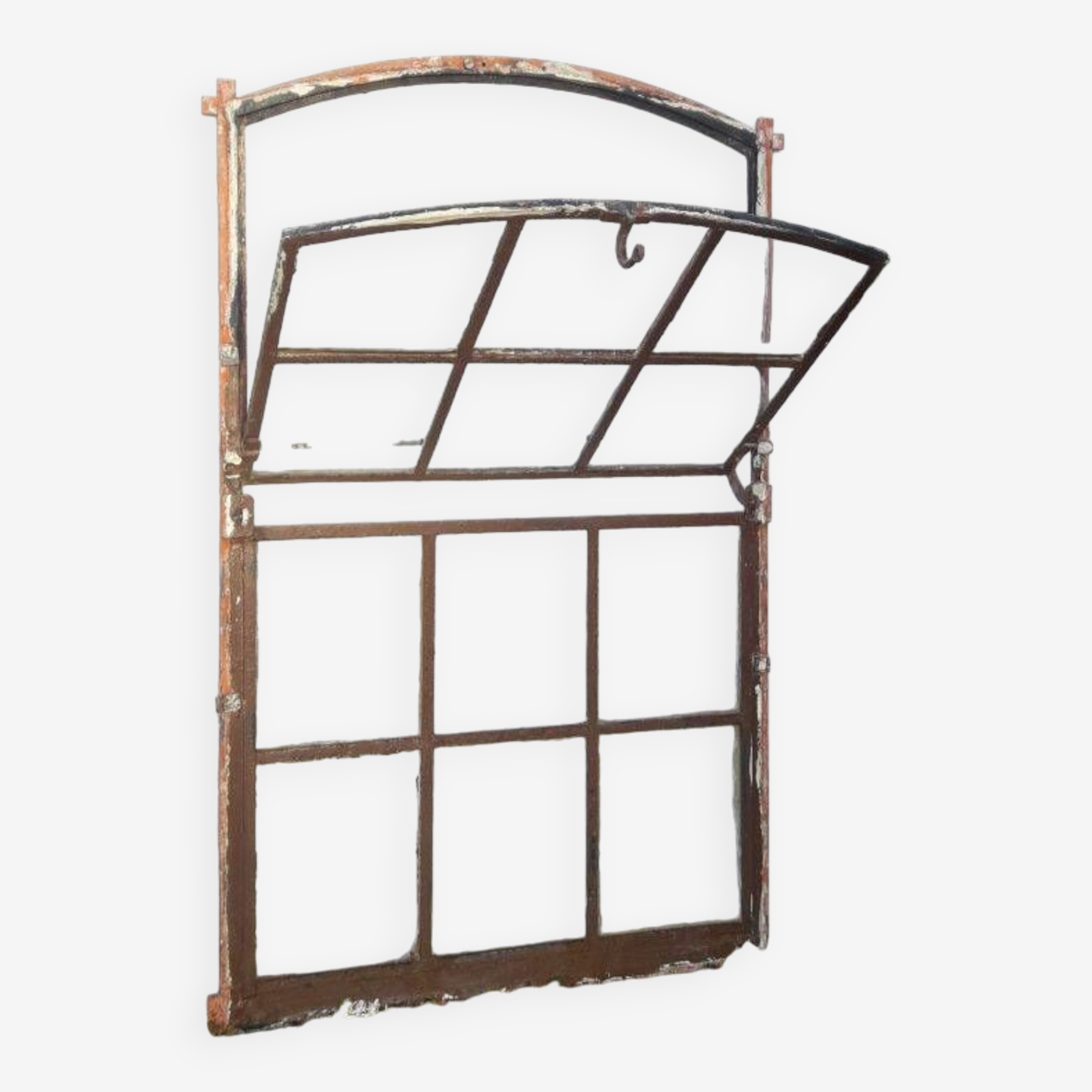 Elle provient d’un bâtiment de 1880, a deux vantaux à chants plats la partie extérieure peinte en noir présente une partie basse avec un chant plat, à l’intérieur deux poignées verticales permettent la manipulation de chaque battant. Solide, authentique !