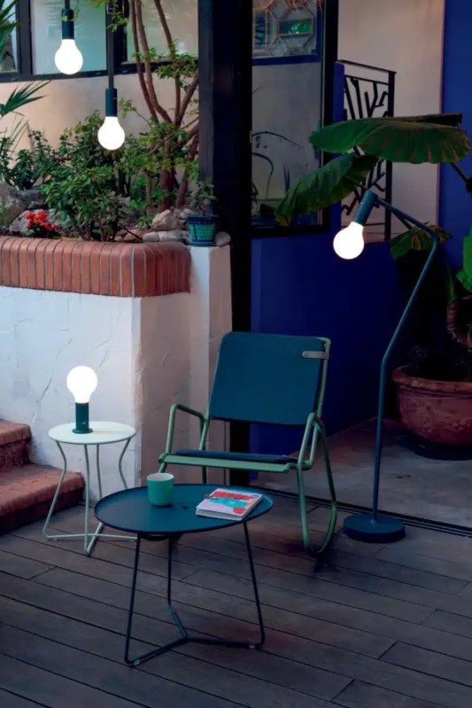 Pour un extérieur cocooning rien ne vaut les lampes Fermob. Grâce à leurs différentes intensités, elles illumineront vos douces soirées d’été sans vous agresser tout en vous permettant de lire ou profiter entre amis ou en famille d’une lumière.