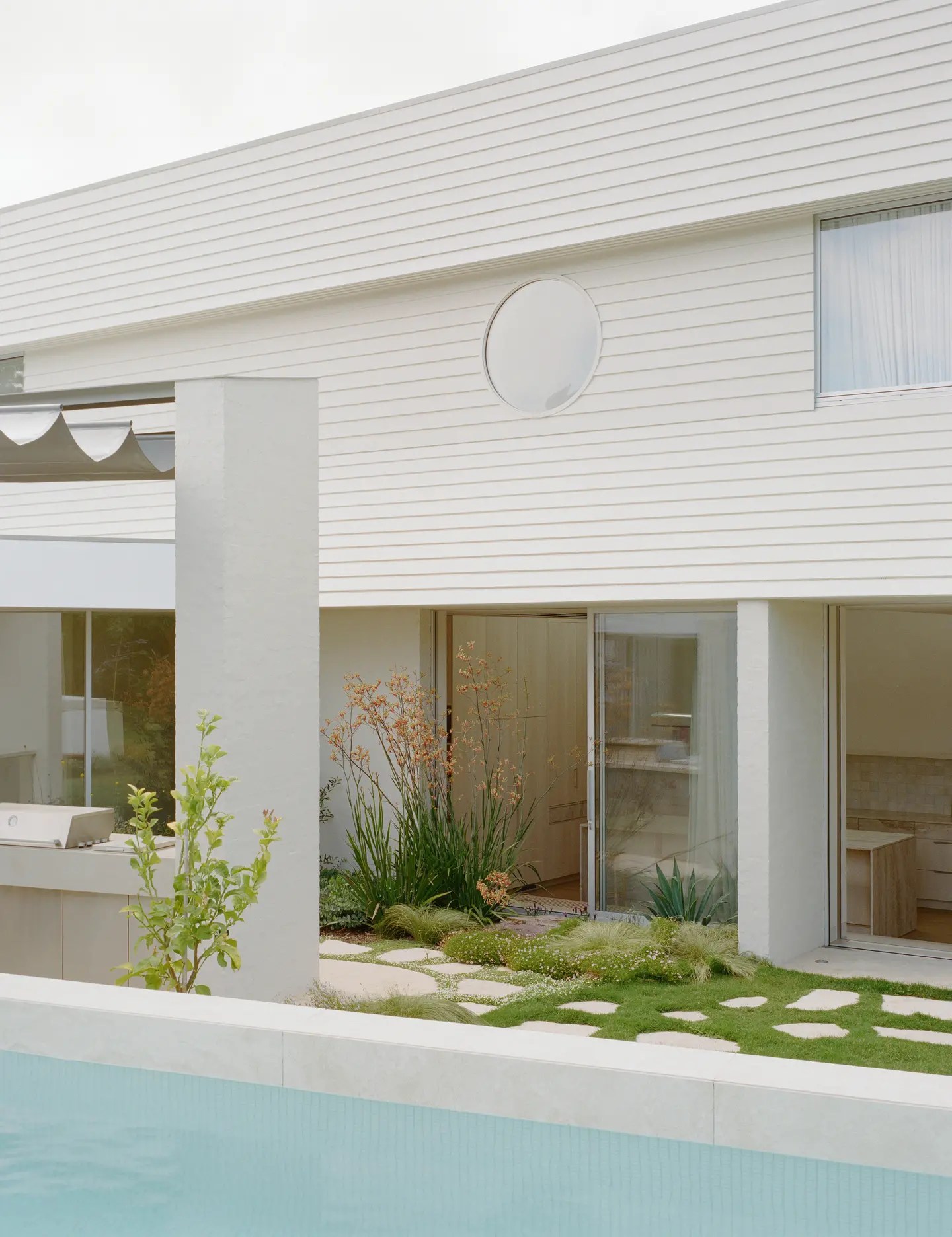 La maison fait référence aux cabanes de plage australiennes nostalgiques dans son utilisation de planches et de bois, tout en s’inspirant des maisons Scandinave et de Majorque, qui ont toutes deux une signification particulière pour les propriétaires.