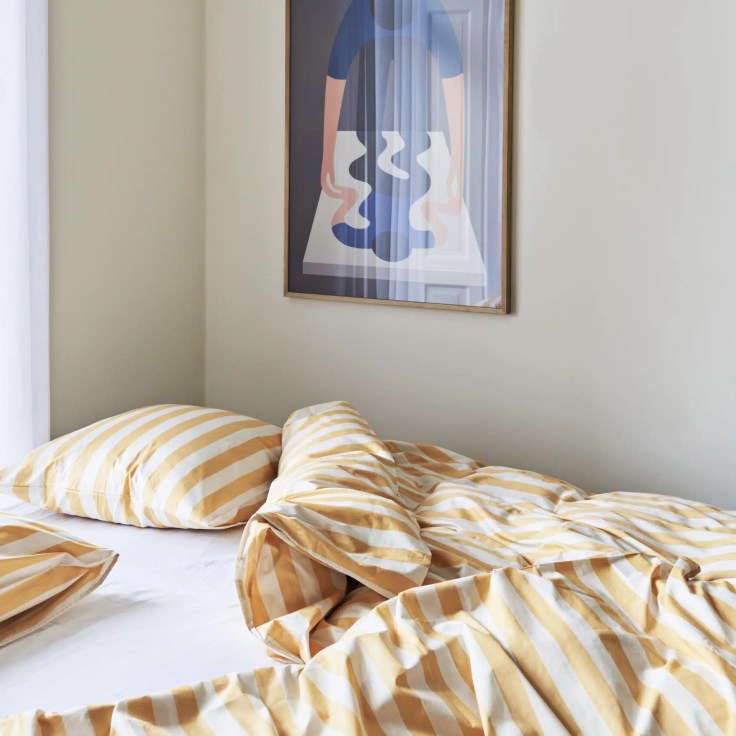 On aime la finition lisse et soyeuse, du satin de coton. C’est son tissage serré qui lui confère cet aspect brillant. Il est parfait pour ceux qui recherchent un toucher et un rendu luxueux. S’il est respirant, il peut parfois sembler un peu plus chaud que le coton standard ou la percale. A éviter si vous avez souvent trop chaud la nuit. Il convient parfaitement aux déco glamour et art déco.