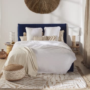 1/ Udupi – Boutis en coton et lin motif floral brodé multicolore 100×200 2/ Parure de lit en gaze de coton biologique écru 220×240
