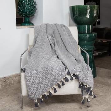 TANAL – Plaid nid d’abeille en coton écru 160×210