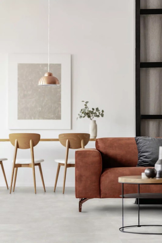Un temps réduites, les gammes de décors vinyle se déclinent aujourd’hui dans des centaines de designs, au look très réussi et au rendu époustouflant. Une variété incroyable permet au sol vinyle d’investir non seulement les pièces techniques, mais aussi des espaces de vie comme le salon, la chambre ou la salle à manger. Les décors façon parquet imitent le bois de manière fascinante, dans une multitude de teintes. Chez Gerflor, pionnier du secteur qui fait évoluer le produit depuis plus de 80 ans, on découvre une quinzaine de finitions parquets, du blanchi au grisé, en passant par le naturel, le noisette ou le doré type Columbia. On trouve également des imitations marbre, béton, carreaux de ciment (Cordoba), métal pour un rendu industriel (blanc, gris, noir type Shale Dark) et terrazzo.