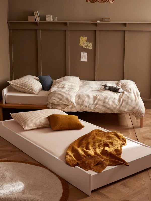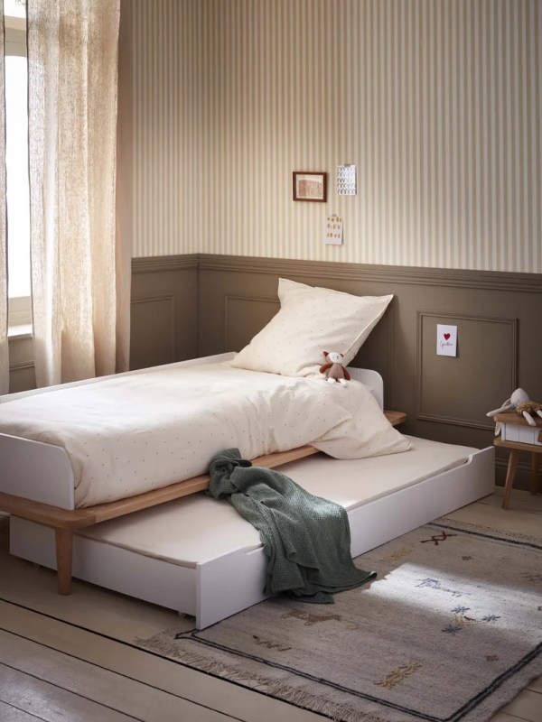 Transformer la chambre d’un enfant en un espace à la fois fonctionnel et agréable peut vite devenir un casse-tête. Entre les jouets, les livres et les petites œuvres d’art qui s’accumulent, l’encombrement s’invite facilement. Ajoutez à cela quelques meubles et un lit, et l’espace de jeu risque de disparaître. Heureusement, de nombreuses marques proposent aujourd’hui des solutions astucieuses pour optimiser chaque recoin . CI-DESSUS Lit enfant Tara, CAMIF
