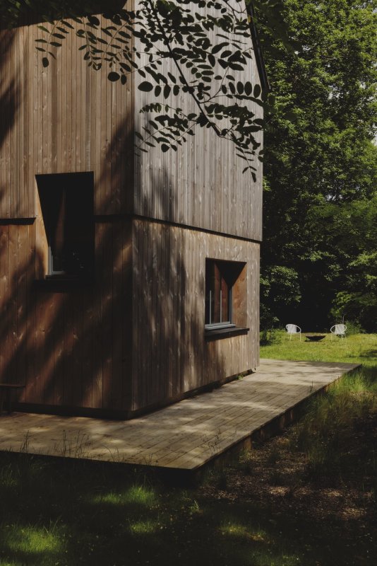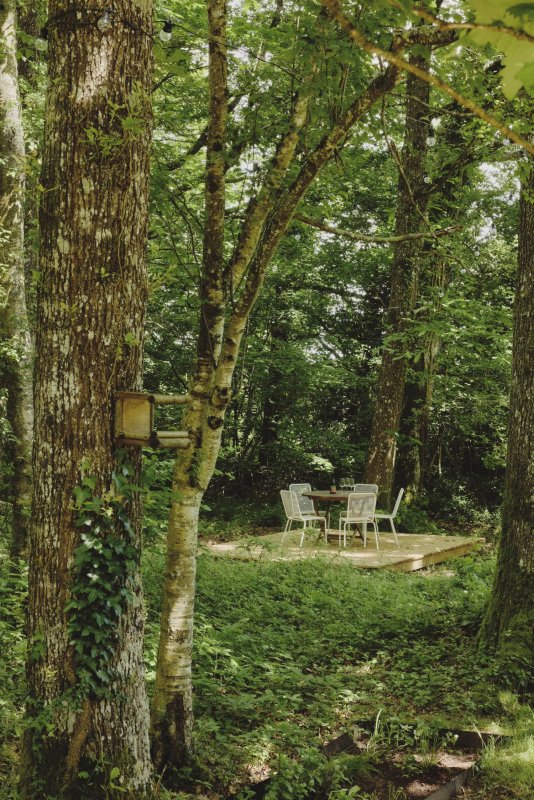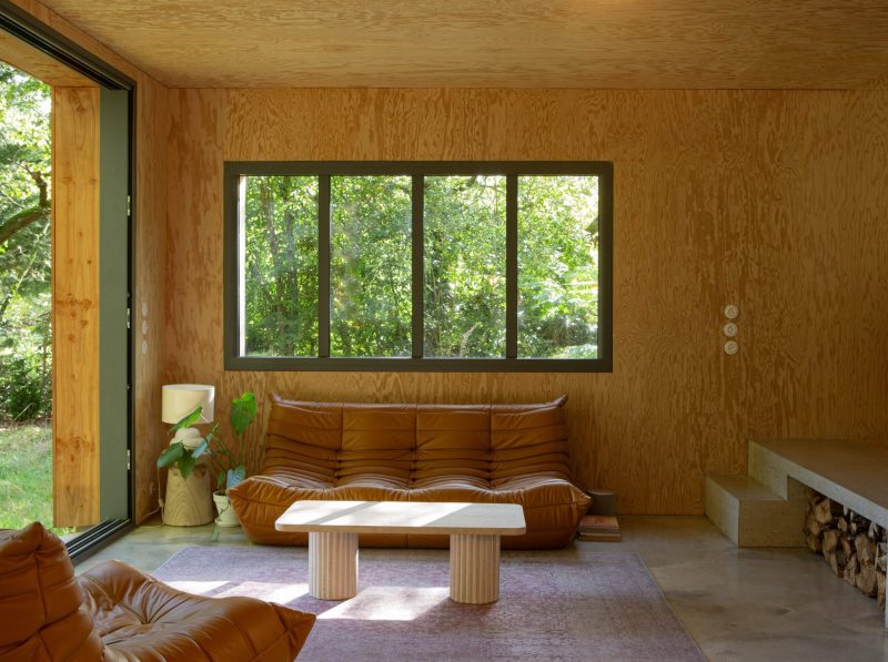Maison Sauvage se trouve dans un bois de châtaigniers, chênes et bouleaux, adjacent à une grande forêt. Elle est faite de bois, de la structure aux tuiles en passant par l’isolation. Son design a été pensé de façon à ce qu’elle se fonde dans la nature et la sublime. On peut y observer les nombreux oiseaux qui occupent les nichoirs, et si on a de la chance, apercevoir des chevreuils qui se promènent dans le jardin.