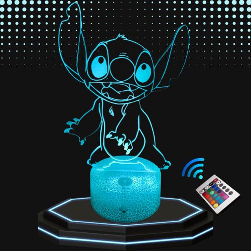 Lampe de chevet 3D led stitch, Veilleuse changement de couleurs, Lampe tactile bureau et chambre enfant
