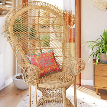 Le style seventies s’invite aussi dans votre chambre avec le fauteuil en rotin Emmanuelle. Nul doute que son charme décalé, un brin bohème, et son imposante stature feront de lui une pièce forte de votre déco.