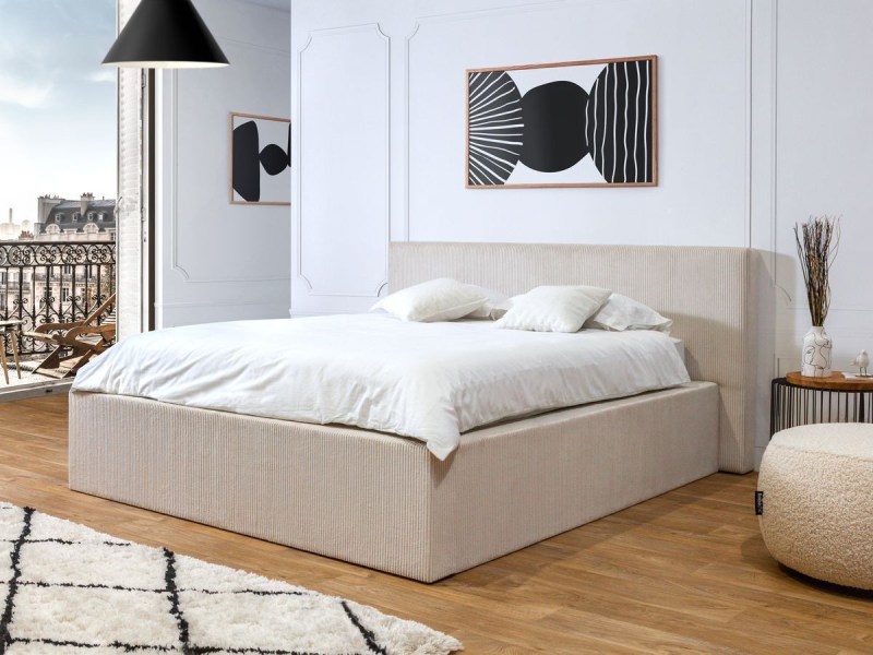 Lit PRUNE avec lattes massives tissu velours bobochicparis