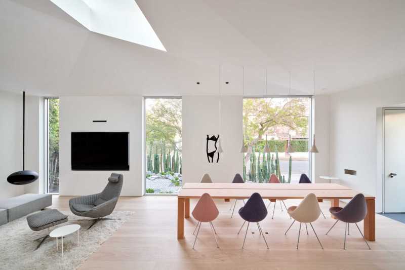 Les architectes Annie Barrett d’ aalso architects et Hye-Young Chung de HYCarch ont audacieusement métamorphosé une maison de style espagnol démodée à Los Angeles pour un couple en quête d’une semi-retraite. Aux côtés de l’architecte paysagiste David Hocker de Hocker Design , ils ont conçu un jardin de devant saisissant avec un écran impénétrable de cactus San Pedro, défiant ainsi l’idée même d’une clôture qui, franchement, paraît désormais obsolète.
