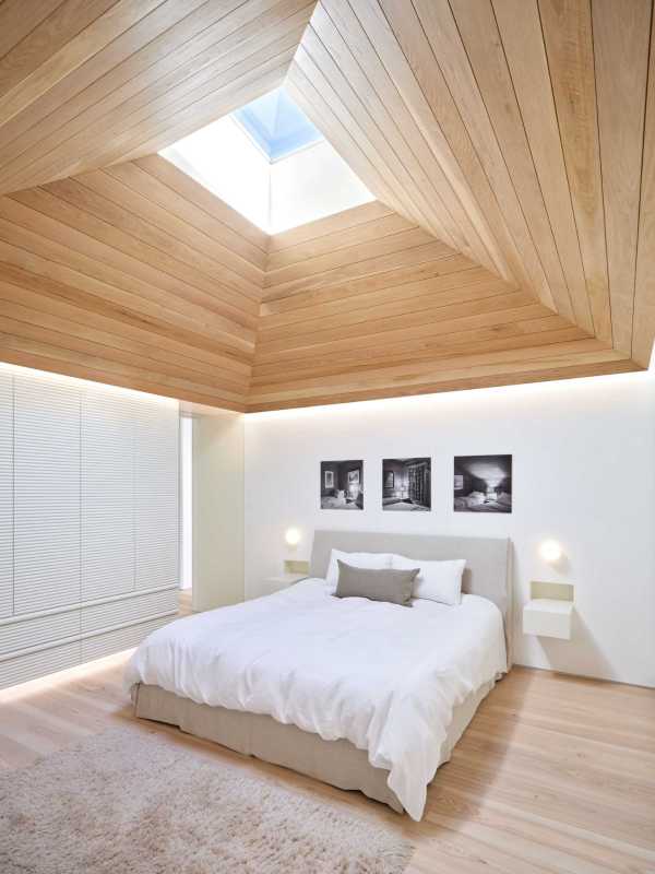 L’entrée bordée de bois présente des lignes qui correspondent au revêtement en bois carbonisé de l’extérieur.
