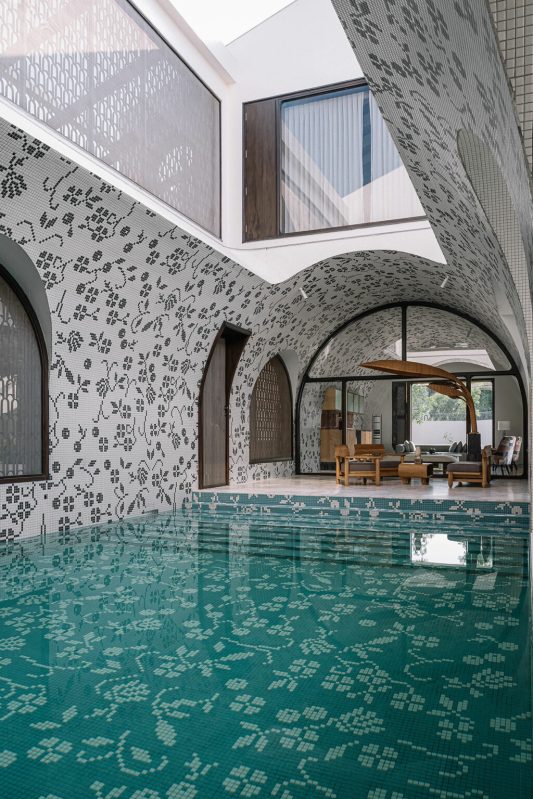 La structure elle-même n’est pas seulement une simple construction, mais un véritable hommage audacieux au patrimoine architectural espagnol et mexicain, se moquant des conventions tout en s’imposant dans le climat tropical de Coimbatore. MuseLAB a choisi des fenêtres encastrées – et pas des surplombs traditionnels ennuyeux – pour se défendre contre un soleil écrasant. Le carrelage décoratif de la cour, d’une pureté provocante, évoque une esthétique historique, tandis que le motif floral sobre, bien au-delà du banal, borde une salle de billard voûtée qui, avec sa composition pixellisée, regarde résolument vers l’avenir.