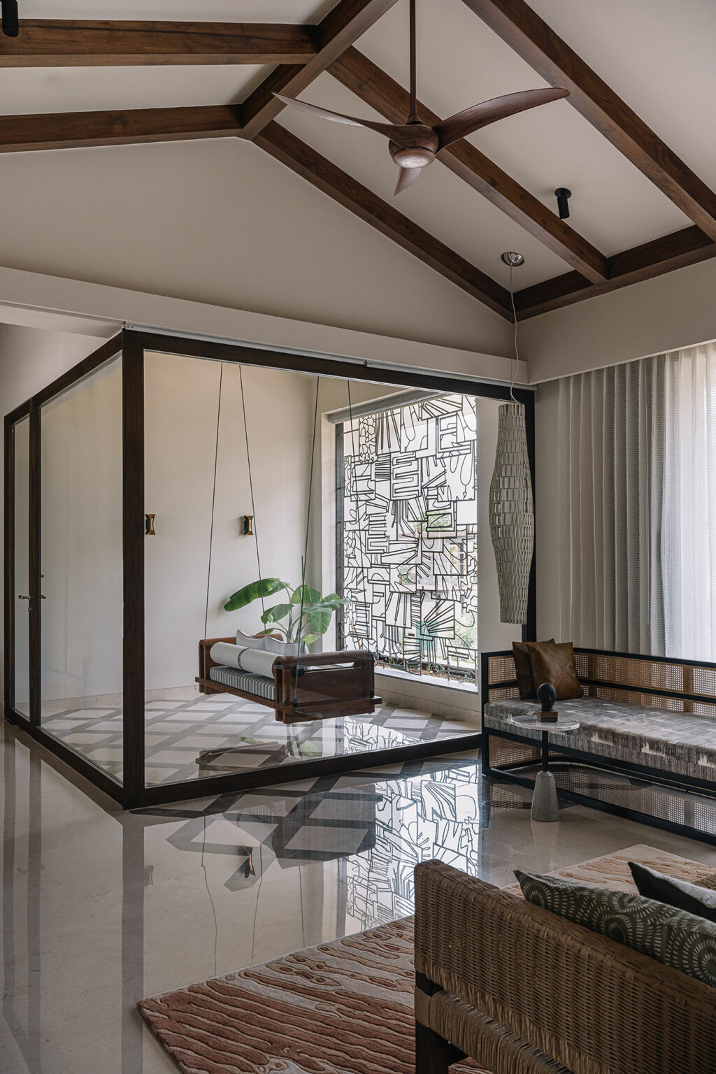 Qu’est-ce qui transforme une simple maison en un véritable foyer ? Qu’est-ce qui insuffle de la vie à cette simple structure en briques et mortier ? Selon la tradition ancestrale indienne et les révélations du Vastu Shastra, des principes architecturaux fondamentaux exigent que chaque habitation soit un moteur de positivité, résonnant avec des vibrations bénéfiques pour ses occupants. Les audacieux designers Huzefa Rangwala et Jasem Pirani, créateurs de MuseLAB à Mumbai, n’ont pas hésité à plonger dans ces préceptes pour façonner cette impressionnante hacienda de Coimbatore, parfaitement intégrée dans cette ville éponyme du Tamil Nadu.