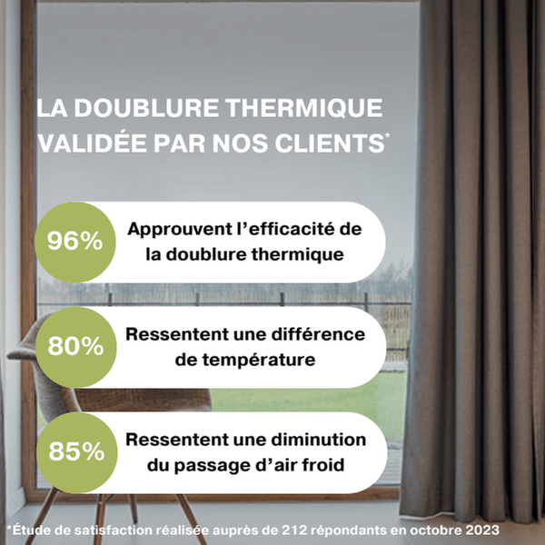 Si vous êtes à la recherche du meilleur rideau thermique pour améliorer l’isolation de votre maison, nos produits sont conçus pour vous offrir un véritable confort. Chez Stores-et-Rideaux.com,ils vous proposent une large gamme de rideaux isolants. Les rideaux thermiques vous offre une isolation optimale, réduisant ainsi vos dépenses énergétiques tout en améliorant le confort de votre intérieur.