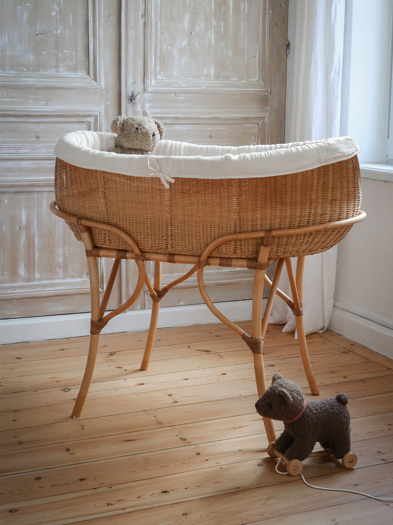 Comme déniché dans les maisons de nos grands-mères, ce berceau en forme de corbeille au charme vintage est une création audacieuse des designers chez Cyrillus . Fabriqué à la main dans des ateliers traditionnels en Indonésie, il arbore un rotin tressé couleur miel, contrasté par des liens caramel qui ne laissent personne indifférent. Avec son design à la fois sobre et délicat, il s’impose comme un incontournable à intégrer dans tous les intérieurs modernes.