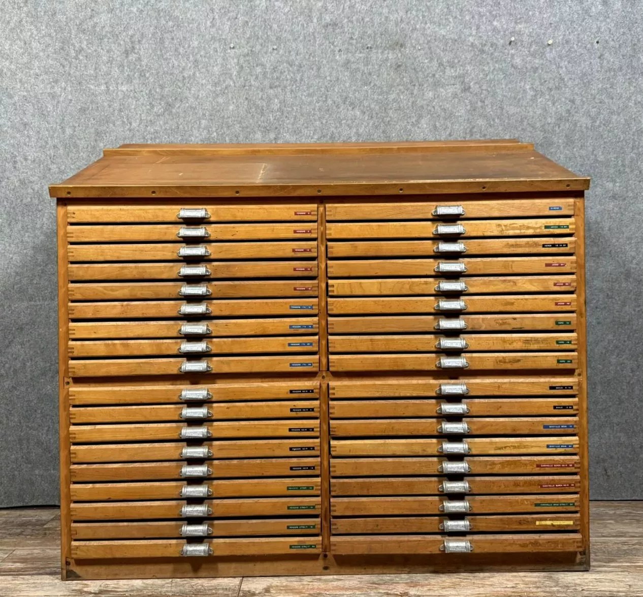 Qu’ils s’agissent de tiroirs, casiers, classeurs ou étagères, les meubles de métier captivent par leur fonctionnalité irrésistible ! Conçus de manière ingénieuse pour simplifier la vie quotidienne de leurs utilisateurs, ils deviennent des héros du rangement, capables de contenir mille et une petites choses avec brio. À l’ère de la seconde révolution industrielle, notamment au début du XXe siècle, ce mobilier précieux se propage comme une traînée de poudre, illuminant tout, des quincailleries aux services postaux, en passant par les bureaux administratifs et les ateliers de confection. Adaptés aux besoins précis de chaque corps de métier, ils offrent aujourd’hui une sélection éclectique, où se mêlent harmonieusement production en série et pièces uniques, célébrant ainsi l’amour du savoir-faire et la beauté de l’utilitaire.
