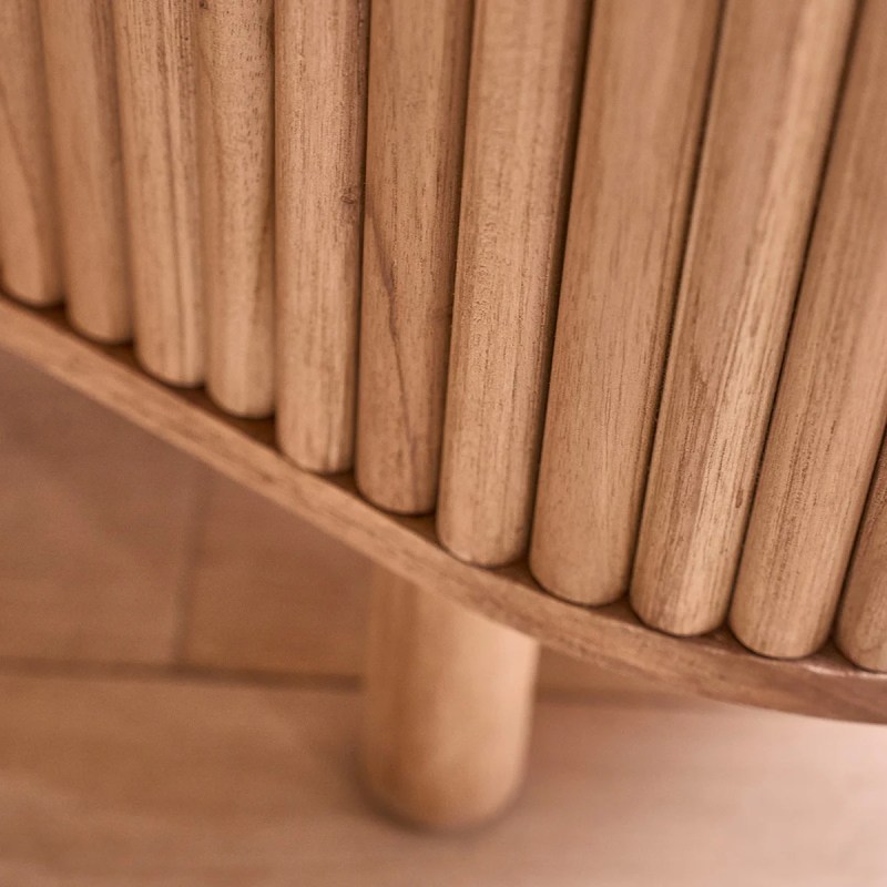 La véritable beauté du buffet COLINE réside dans ses détails. Les rondins de bois effet cannelé, méticuleusement assemblés à la main, rappellent le savoir-faire traditionnel tout en apportant une note contemporaine.
