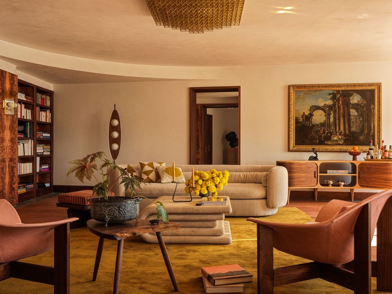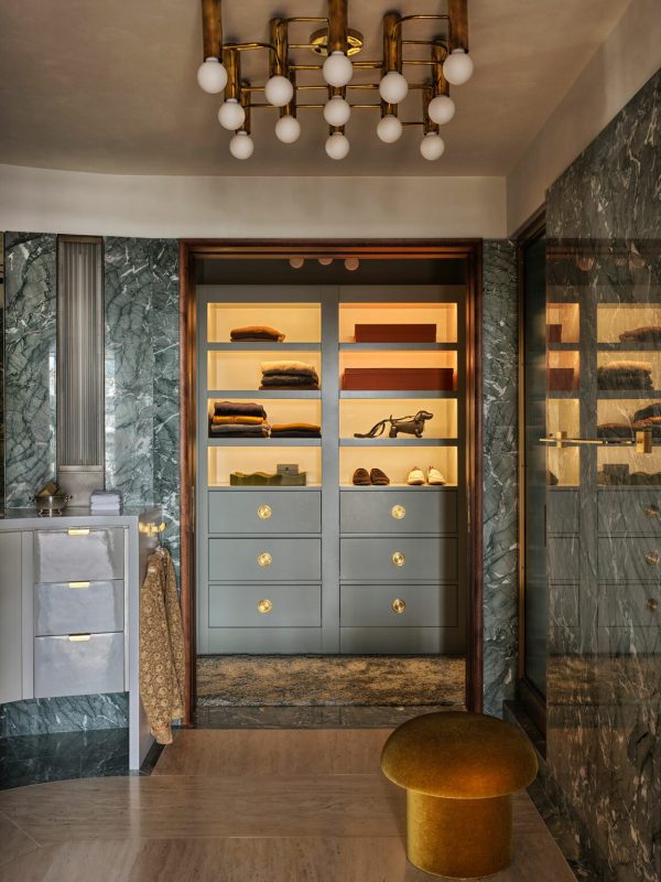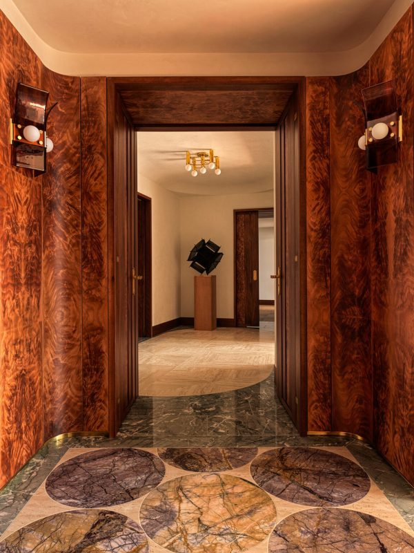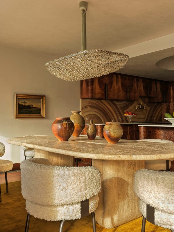 Partout dans la maison, les références vont de Mies van der Rohe à la Sécession viennoise – à travers les lignes structurelles, les choix de matériaux et un sens rigoureux de la symétrie. Pourtant, l’appartement dégage une impression d’authenticité, une synthèse affirmée des époques, ancrée dans le présent.