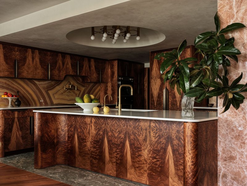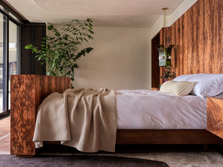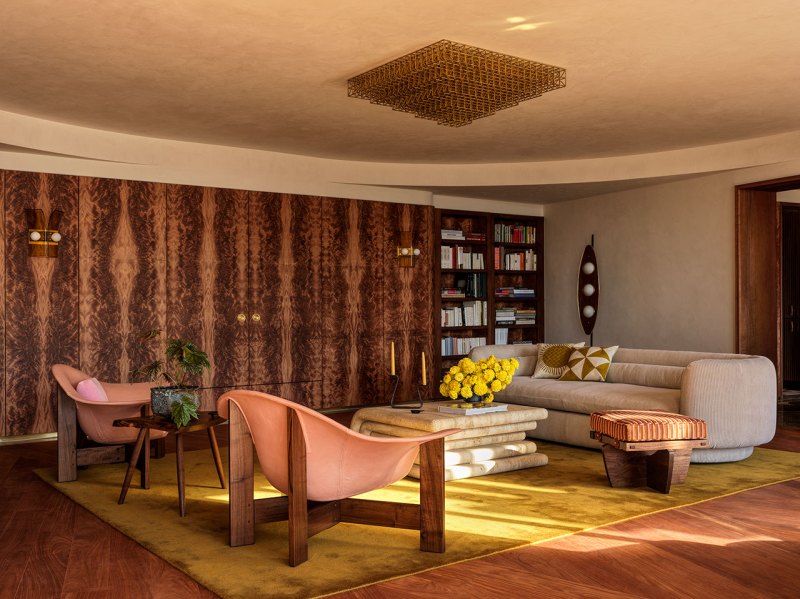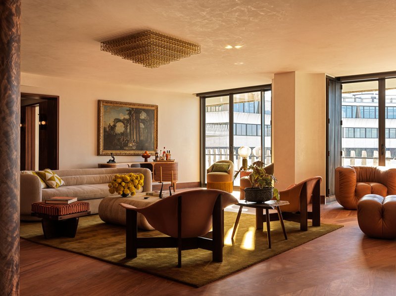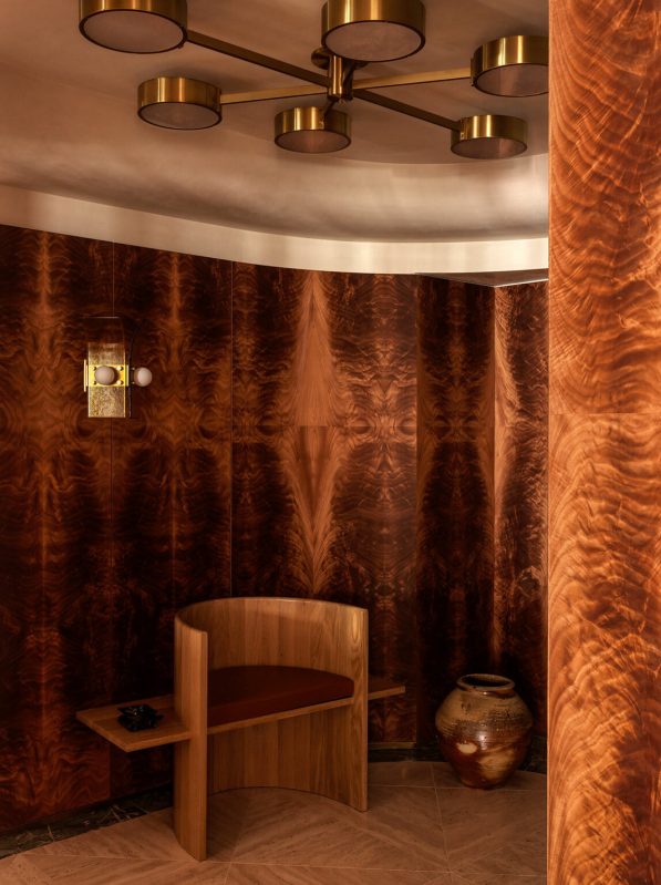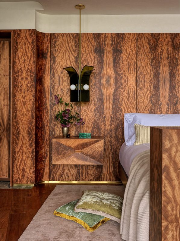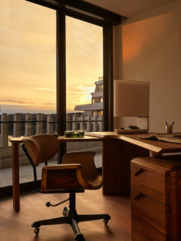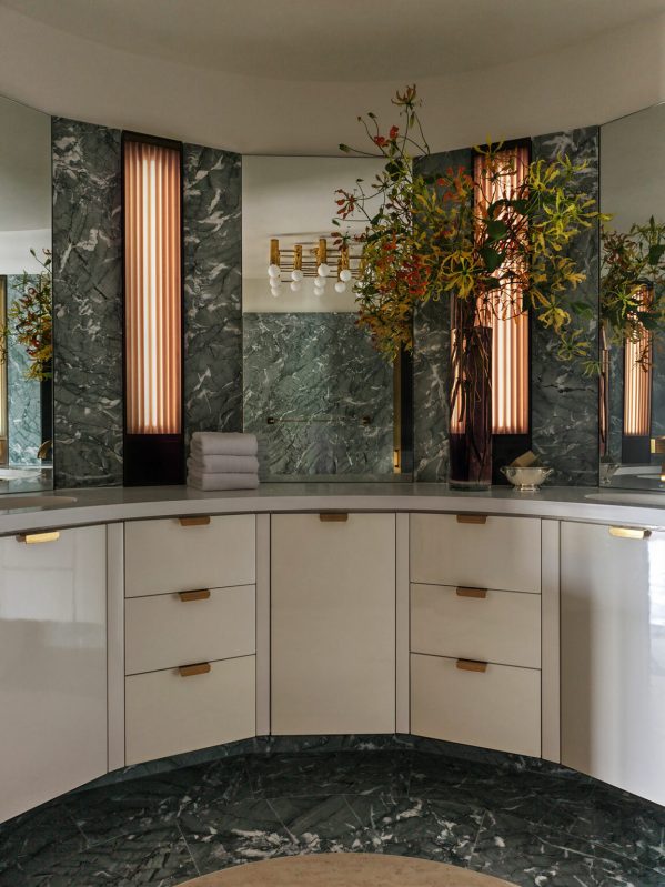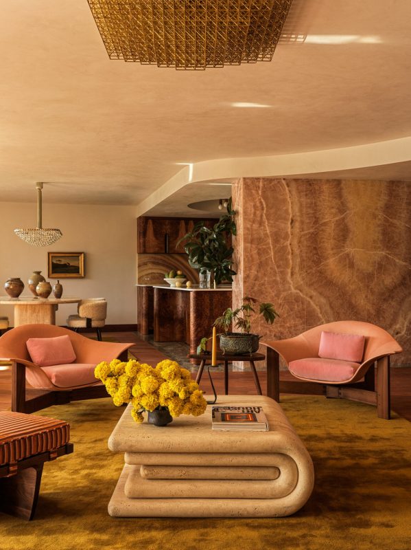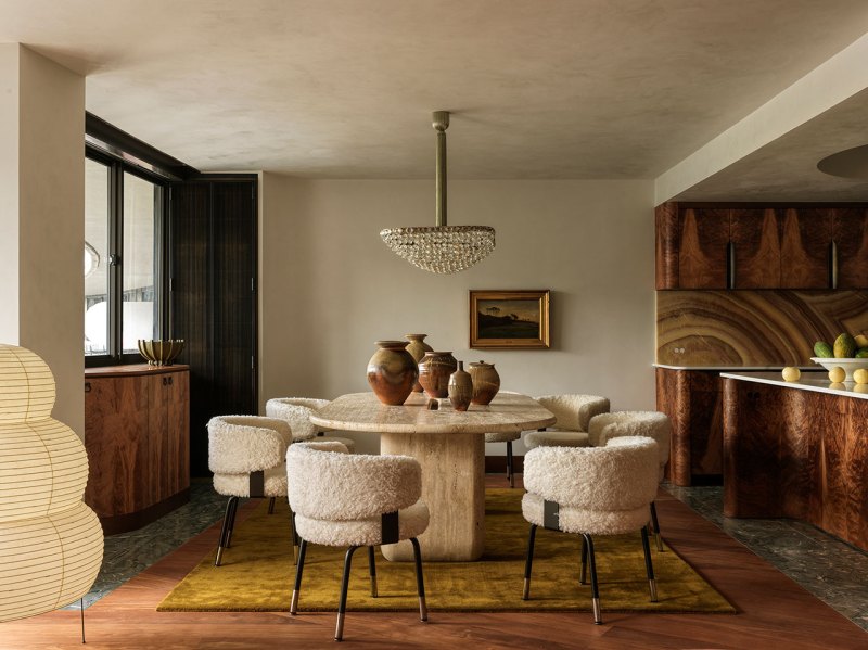 Pour meubler l’appartement, Potts et Watson ont fait appel à une sélection internationale de galeries de design, concevant une collection à la fois intemporelle et résolument actuelle. Des pièces de The Future Perfect, de la Galerie Morentz et du Studio TwentySeven côtoient avec art du mobilier vintage, notamment des plafonniers Leola des années 1970 signés Sciolari, créant ainsi un récit intérieur qui traverse les décennies.