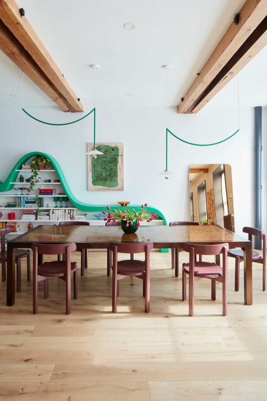 Situé dans un ancien bâtiment industriel centenaire de Brooklyn, à New York, ce loft de 155 m² ne se contente pas d’être un simple espace — il défie les conventions avec un mélange audacieux de ludisme et de design industriel. Conçu par Hormuz Batliboi du Batliboi Studio pour la propriétaire Valerie Tsvetkova, figure emblématique à la tête des services créatifs de la marque de beauté Elizabeth Arden, cet appartement réinvente l’art de vivre en loft, fusionnant un charme historique avec une ingéniosité moderne qui ne peut pas passer inaperçu.