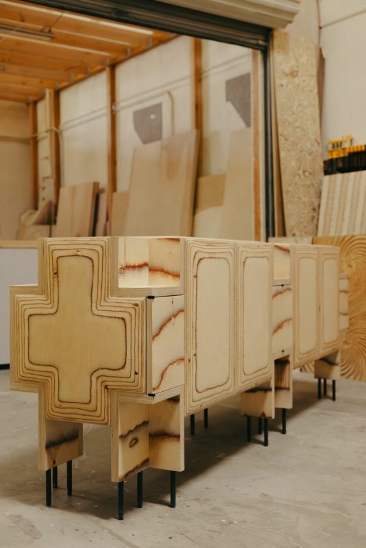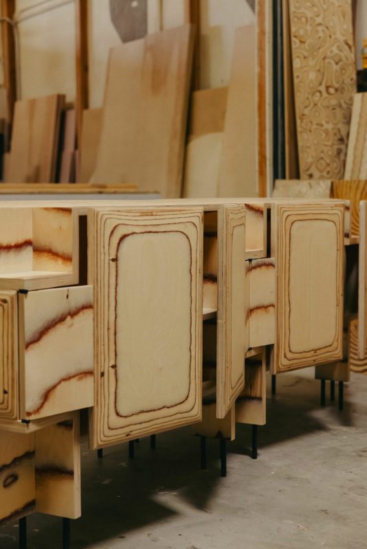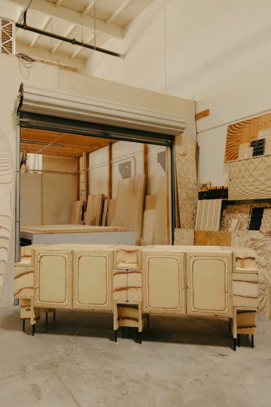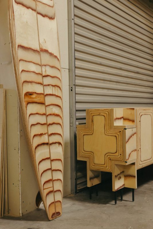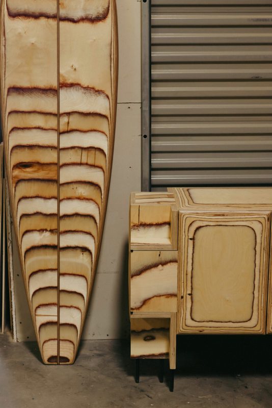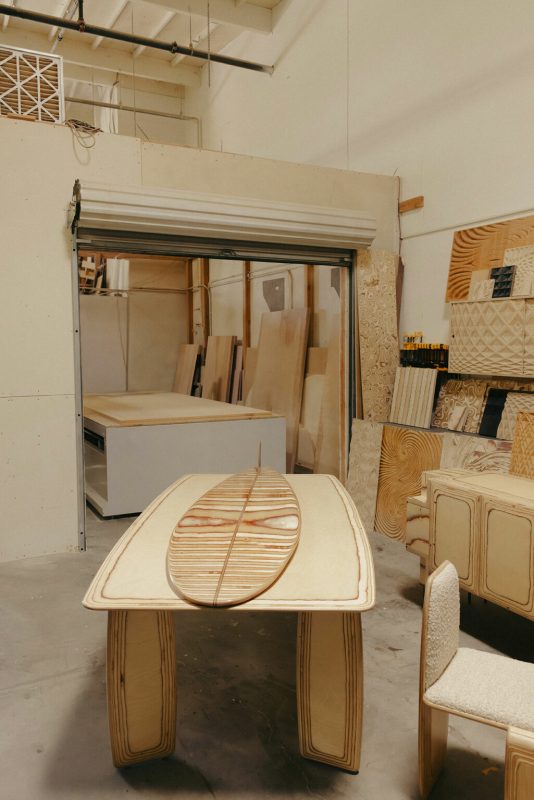 crédence Pacific, la crédence Trancas revisitée. Offrant un hommage vibrant à l’âge d’or de la culture surf, la planche Pacific Longboard se dresse comme un ajout monumental, faisant vibrer l’âme de tout espace. Chaque objet, façonné avec amour à la main, révèle des couches fluides de bouleau, chaque grain chantant sa propre histoire, tel les vagues qui dansent à l’aube. Son équivalent, le buffet, transcende le simple rangement pour devenir une œuvre sculpturale, fusionnant un design pratique avec l’esprit audacieux du savoir-faire surf, tout en s’inscrivant dans l’évolution captivante de la pièce Trancas originale de Wearstler. Sa forme modulaire et ses anneaux de bouleau apparents évoquent les lignes délicates des marées, tandis que des rangements dissimulés préservent une fonctionnalité astucieuse derrière un extérieur d’une beauté saisissante.
