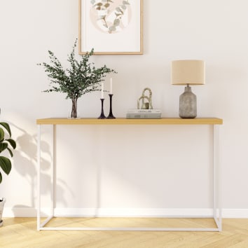 - Recouverte par un plateau en chêne, cette console fera un joli support pour un vase, une lampe ou une petite plante verte.