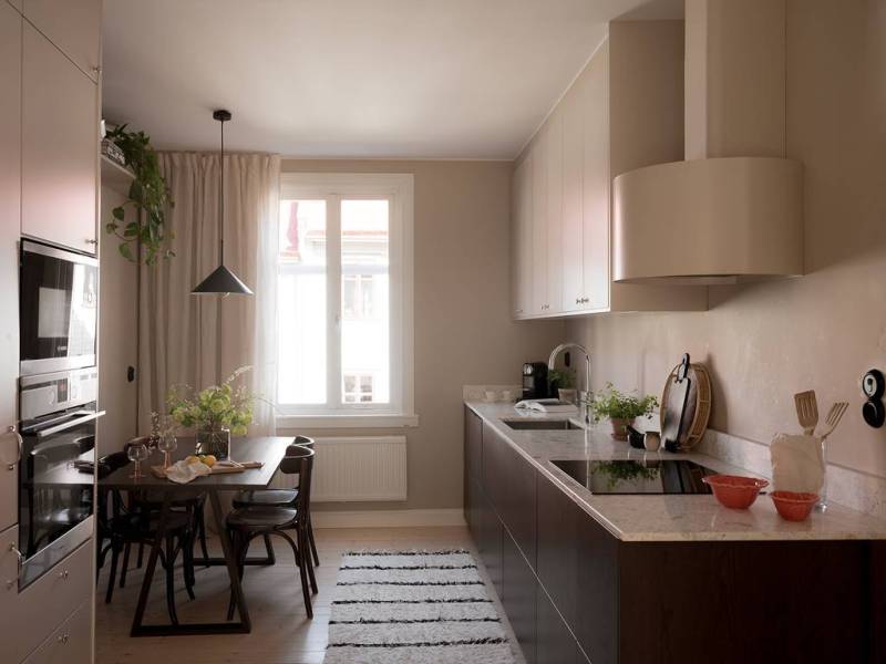 Voici un lieu qui saura séduire par son harmonieux mélange de modernité et de respect des traditions anciennes. Il allie le charme du passé au confort contemporain. Dès l’entrée, un hall spacieux reçoit les visiteurs. Les détails apportent un caractère indéniable à l’espace, tandis que les murs clairs et le parquet d’origine instaurent une atmosphère accueillante. La cuisine se distingue par son élégance moderne et intemporelle, se mariant parfaitement au style de l’appartement.