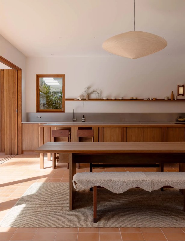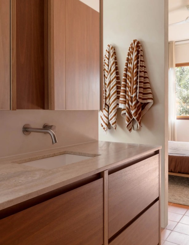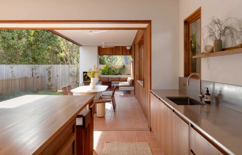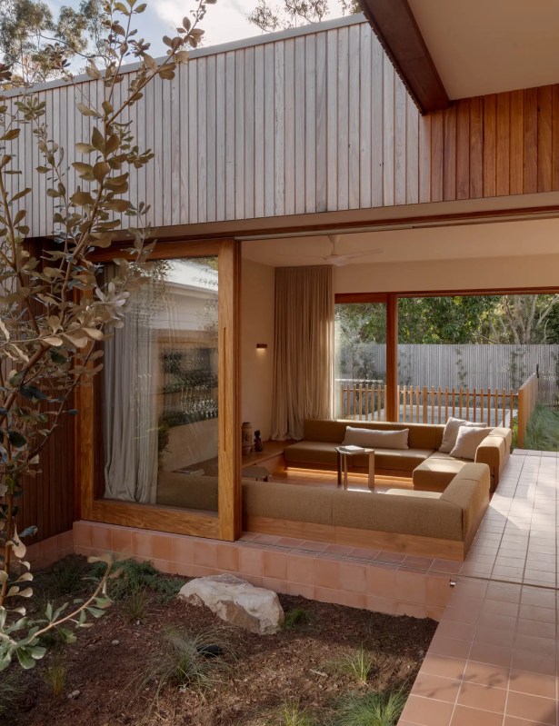 La transformation est en grande partie due à la palette de matériaux mise à jour de la maison, qui combine des éléments du modernisme de la brousse de Melbourne, avec le style décontracté des bungalows californiens et le minimalisme japonais.
