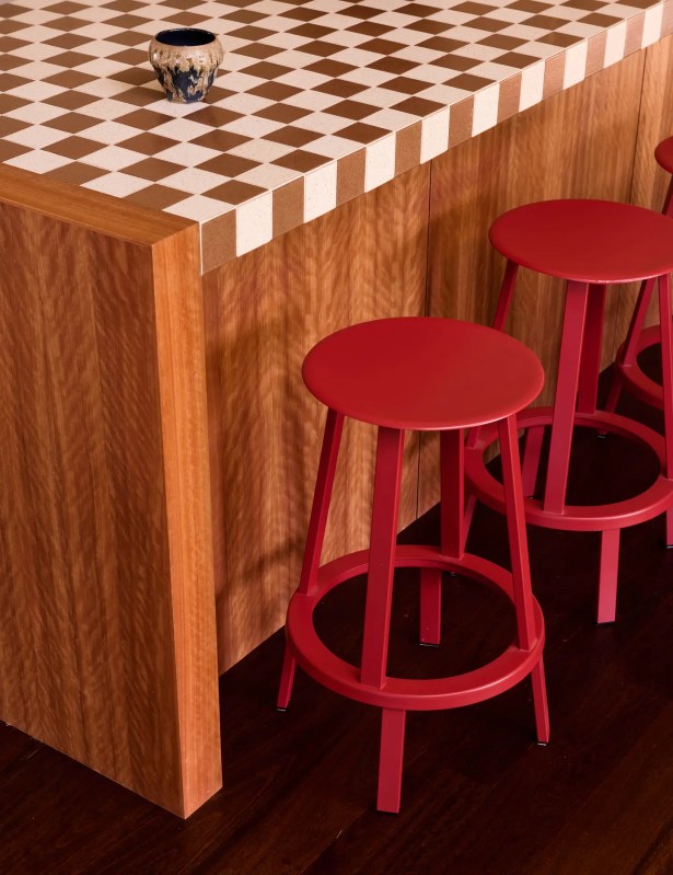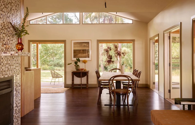 Les principaux espaces de vie à l’intérieur ont été reconfigurés pour créer une salle familiale multifonctionnelle unique et une cuisine avec un banc d’îlot à carreaux ludique.