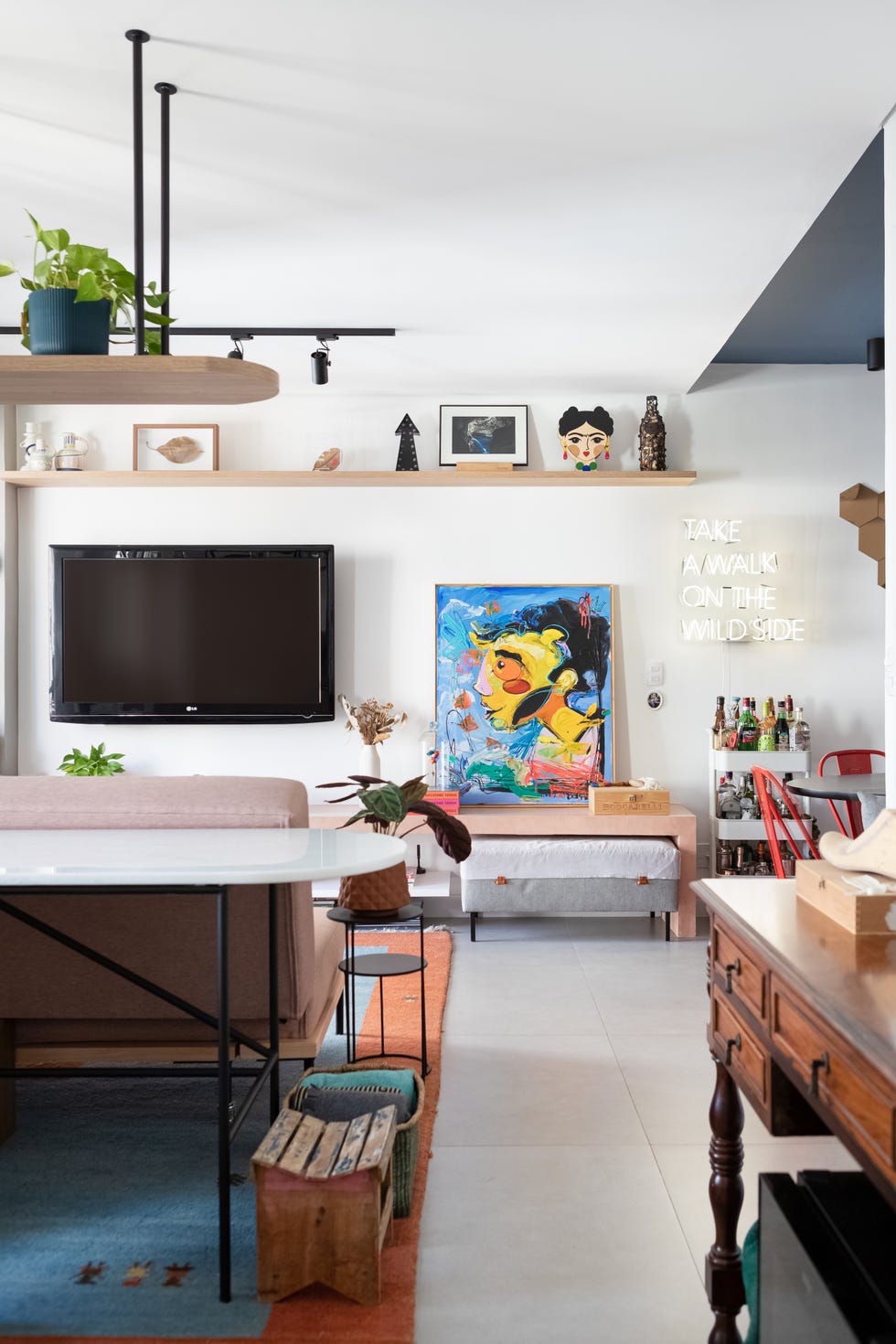 L’objectif cette jeune propriétaire était limpide : transformer son nouvel appartement rénové de 70m2 en un théâtre bouillonnant de vie, de souvenirs explosifs et de caractère. Le Studio Monfré Arquitectura a relevé le gant en réalisant une métamorphose radicale. Cloisons volées, installations modernisées et réagencement audacieux : enfin, un espace qui respire ! Ancienne petite fille de l’immeuble, elle exigeait un intérieur qui résonne avec ses racines tout en s’ouvrant sur une lumière éblouissante. La suppression d’une chambre a libéré un vaste salon multifonction, où le coin détente et l’espace de travail s’entrelacent avec une harmonie troublante.