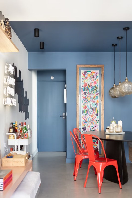 Dans la chambre, fruit merveilleux de la fusion de deux anciennes pièces réunies, se dévoile un somptueux dressing et une élégante salle de bains . La cuisine, malgré les contraintes structurelles qui ont entravé son ouverture totale, a gagné en harmonie grâce à la disparition d’une porte. Chaque choix audacieux, du carrelage coloré aux meubles chinés avec soin, témoigne de son amour pour les matériaux récupérés, l’art et les objets chargés d’histoire. La palette chromatique, éclatante et raffinée, confère à chaque pièce une identité unique, vibrante de sa personnalité. Ce lieu n’est pas simplement un appartement rénové de 70m2, mais un sanctuaire qui lui ressemble entièrement.