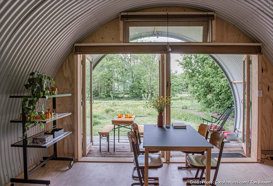 La structure des tiny houses est une « shelter hut » préfabriquée qui nous rappelle nos besoins fondamentaux de sécurité et de confort. À l’origine, elle était conçue comme « un abri d’urgence, constitué d’un toit incurvé en tôle ondulée ». En nous plongeant dans son histoire, on songe aux façades avant et arrière maçonnées, qui évoquent les abris utilisés par l’armée américaine après la Seconde Guerre mondiale.