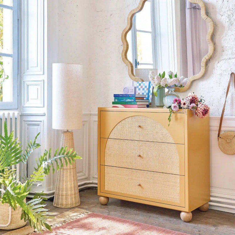 Le cannage, un vrai coup de cœur ! Cette matière naturelle, si légère et pleine de caractère, fait un retour triomphal dans nos intérieurs. Et lorsqu’elle s’invite sur de magnifiques commodes Maisons du monde, il est impossible de lui résister. Avec leurs lignes épurées, leur touche artisanale et cet esprit bohème si séduisant, ces commodes insufflent une personnalité unique à chaque pièce. Que ce soit dans une chambre, une entrée ou même un salon, elles s’installent avec aisance, transformant l’atmosphère en douceur, authenticité et charme irrésistible.