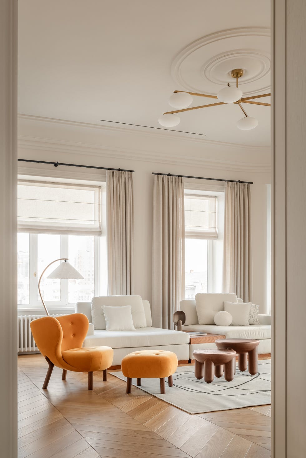 La rénovation conçue par YD Interior Studio pour cette maison du début du XXe siècle combine une palette claire, des arches en bois et des détails décoratifs qui équilibrent histoire et modernité dans chaque pièce. Pour y parvenir, le designer a choisi une palette de tons clairs et chauds, entrecoupée d’ accents de couleur judicieusement placés dans chaque pièce.