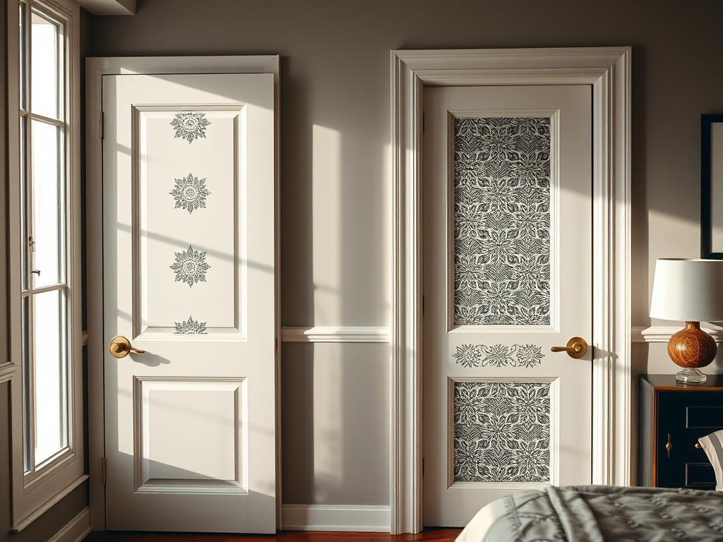 Une autre option très intéressante consiste à décorer les encadrements de porte avec une bande de papier ou des pochoirs , permettant d’y appliquer un motif complémentaire. Cela crée un joli motif qui souligne la porte et peut être idéal pour réinventer les styles classiques de cuisine , de chambre ou de salon.