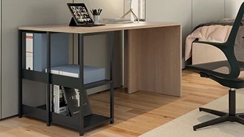 L’emplacement de votre bureau dans la chambre n’est pas à prendre à la légère. Cet espace de travail doit avant tout rester discret pour ne pas transformer la chambre en… bureau. Disposez idéalement votre bureau auprès d’une fenêtre, face à une vue dégagée, mais aussi dos au lit pour un maximum de concentration.