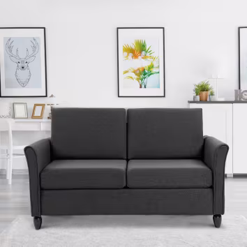 Homcom – Canapé 2 places design scandinave pied bois tissu effet lin gris foncé 225,90 € Maisons du Monde