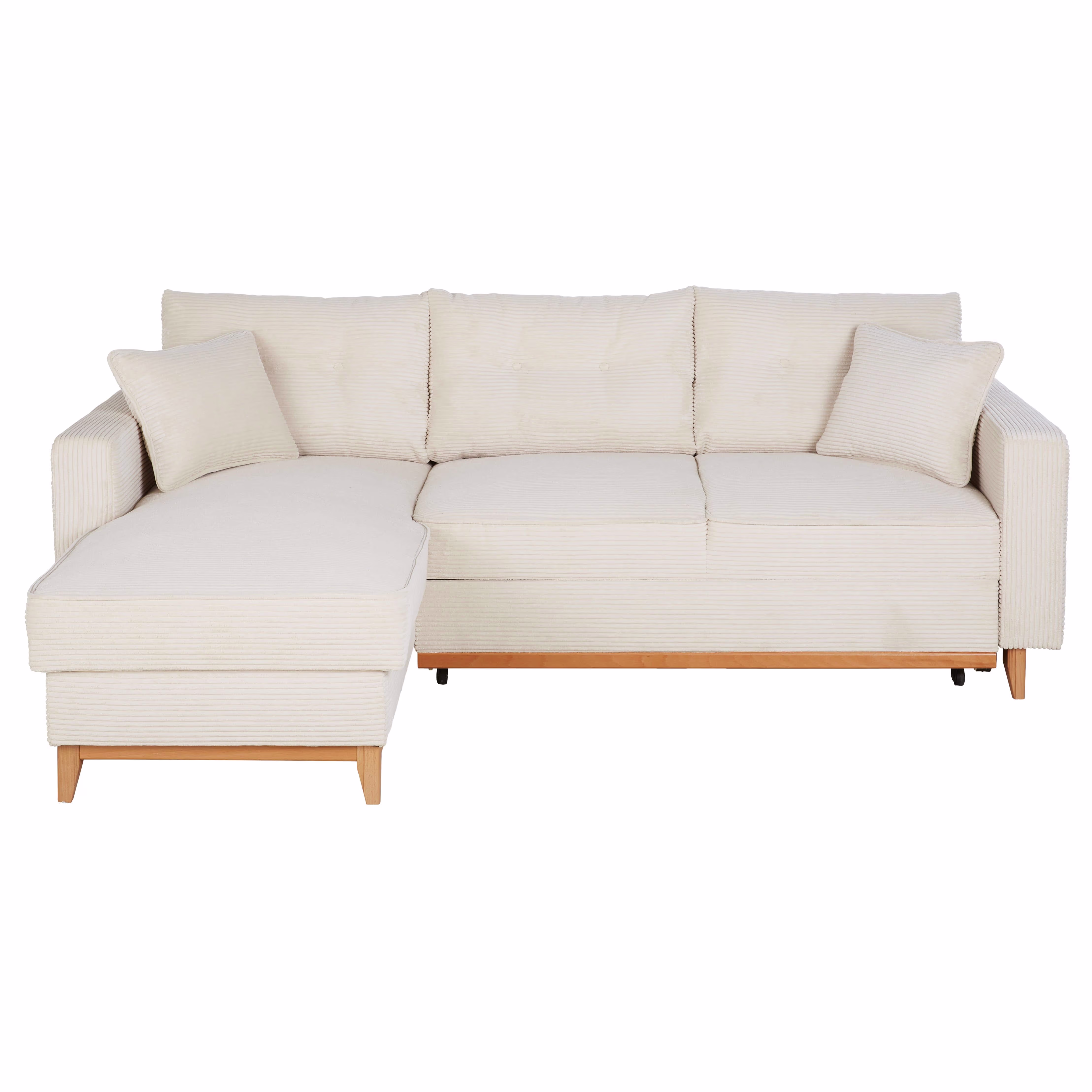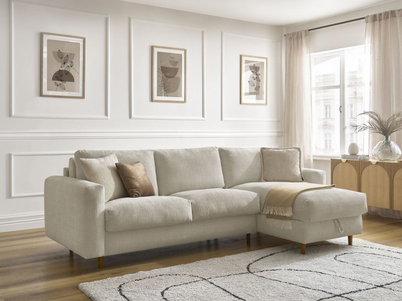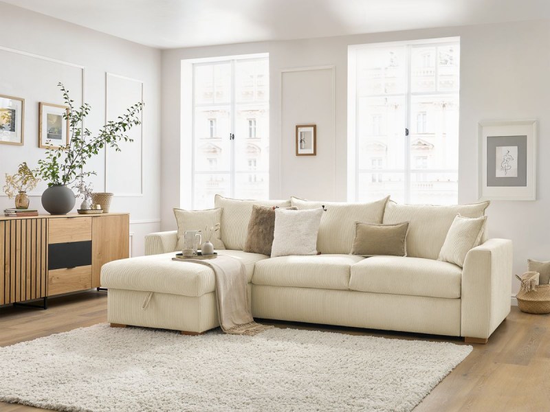 Brooke – Canapé d’angle convertible style scandinave 3/4 places en velours côtelé beige Maisons du Monde